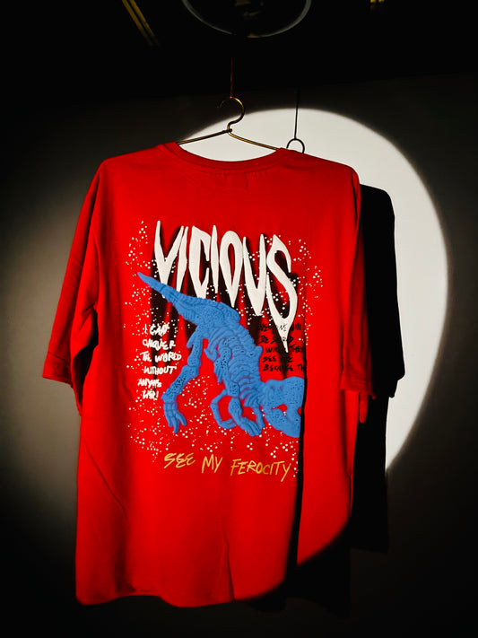 VICIOUS Bold Red Graphic T-Shirt – Unleash Your Ferocity 220GSM